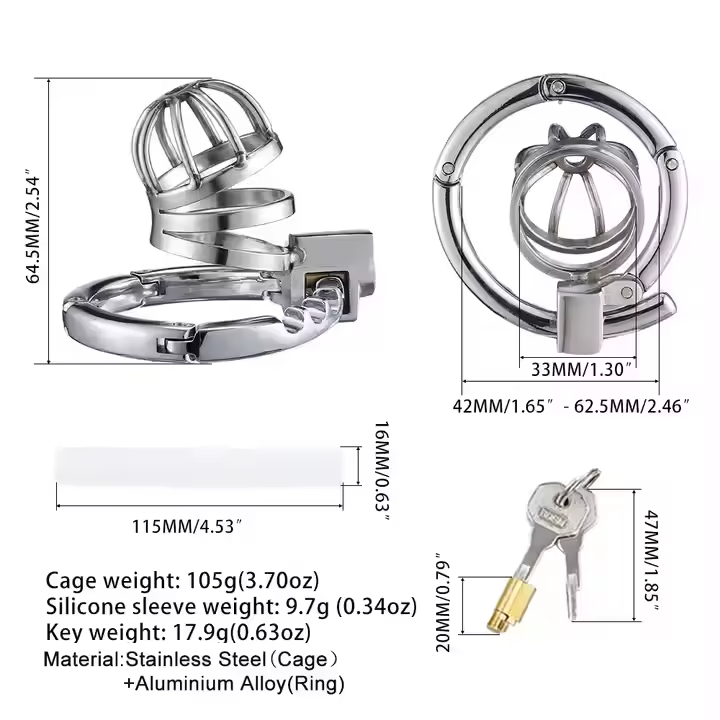 The carabiner of our metal chastity cage for men is adjustable, adjust the snap buckle to the right position by the actual size, the adjustable range is 42-62.5mm.