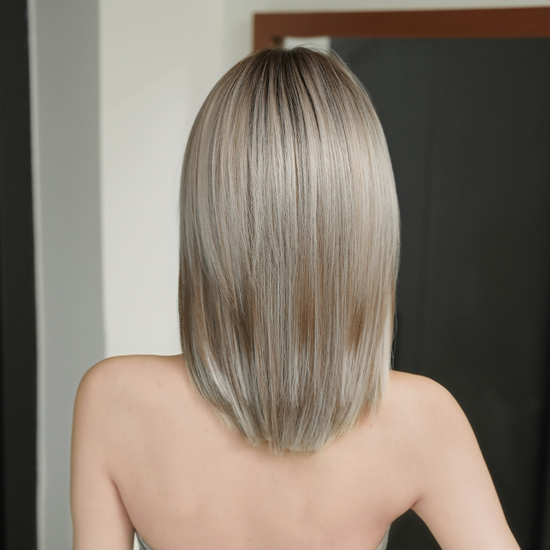 Ainizi 40cm Dark Gray Layered/Ash Blond Synthetic Hair Wig