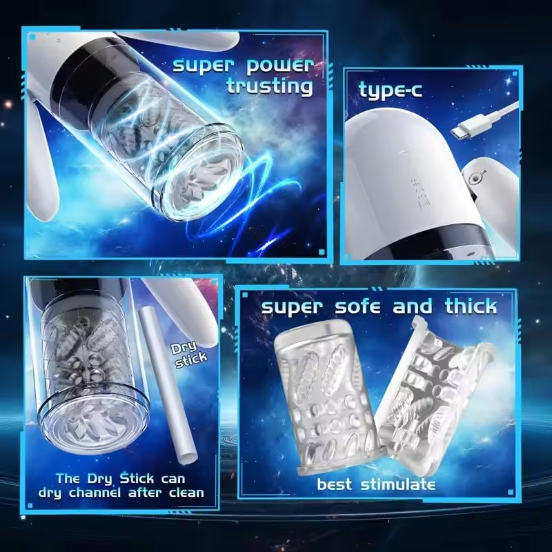 The VAVA Cup Masturbator features 4 thrusting and rotation modes with 7 differing speeds available. It’s very easy to switch between the different functions with the easy press buttons and find your favourite angle. The clip in removable soft silicone penis sleeve features studs and ridges that provide optimal stimulation for your penis. Always use a quality water based lubricant on the penis for extra comfort as this masturbator has a fast and strong thrusting system. Clean the toy after use with lukewarm water and a toy cleaner.