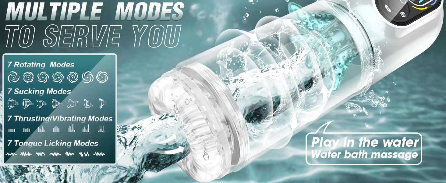 This cutting-edge pleasure device is designed to redefine solo satisfaction. This innovative masturbator boasts a unique combination of water spa, sucking, tongue licking, double vibration and rotating and thrusting functionalities all in one machine.