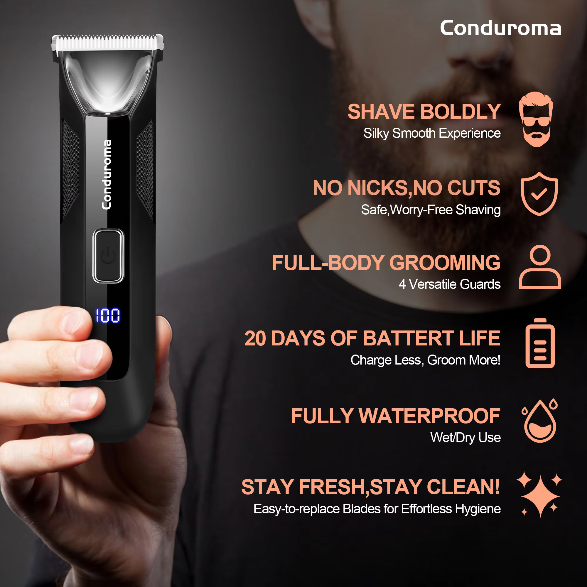 Waterproof High Performance Body and Hair Trimmer